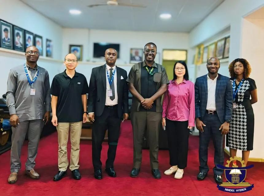 The visiting team from CI, KNUST, led by Prof. Daniel Y.A. Duah (Ghanaian Director), Prof. Zibi SU (Chinese Director), and Prof. Zhou Guiping (Deputy Chinese Director), met with Prof. Dwomoh and his team to introduce the institute and explore collaboration opportunities.